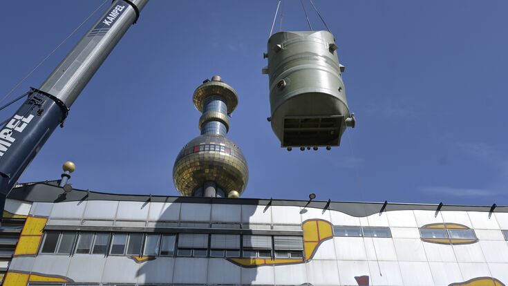 Над виглядом будівлі працював еколог Гундертвассер. Він дуже красиво розташував вікна на фасаді. Крім цього, центральний димар оснастили великою кулею, зробили облицювання емалевою плиткою. На створення архітектури будівлі було витрачено понад 80 мільйонів шилінгів. У 1989 році відновлювальні роботи завершили. У рамках реконструкції Шпітеллау оснастили найсучаснішими в Європі системами очищення приміщень від газів.